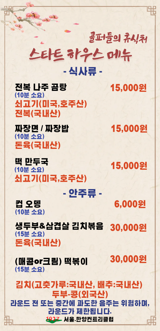 품격있는 요리, 최상의 서비스로 한분 한분 정성으로 모시겠습니다. 클럽하우스 2층에 위치한 대식당에서는 하루의 여유로운 휴식이 되기를 바라는 마음으로 집밥같은 정성으로 준비한 식사를 맛보실 수 있습니다. 또한 계절별로 특선메뉴를 준비해 새로운 즐거움을 선사해 드릴 것입니다.
