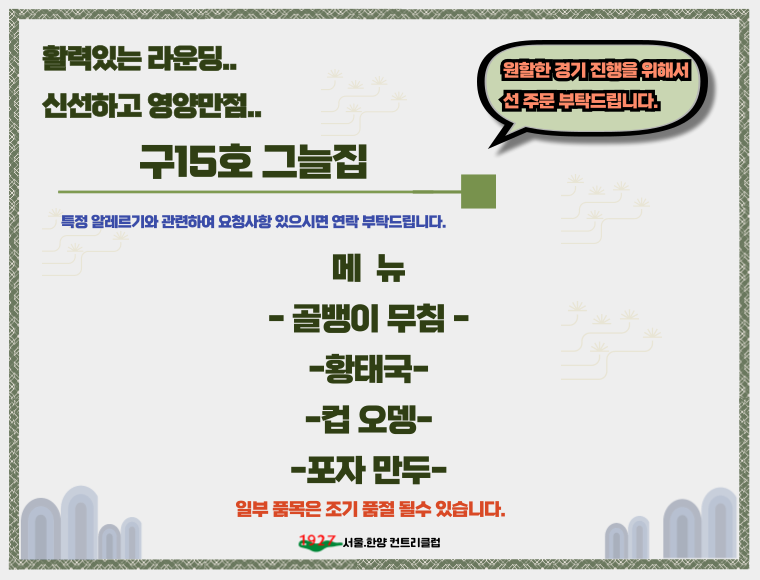 또한 계절별로 특선메뉴를 준비해 새로운 즐거움을