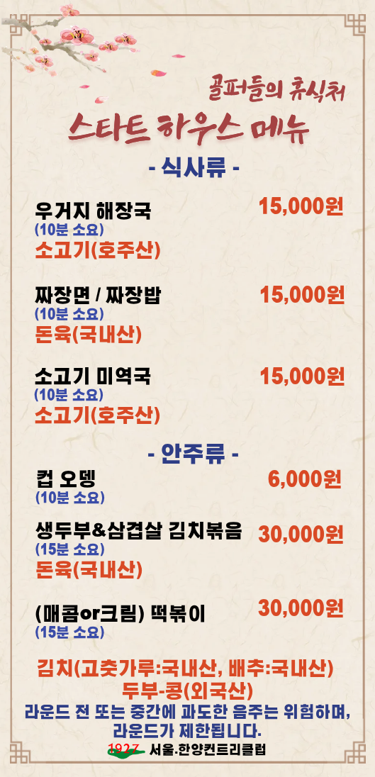 운영시간 Tee-off 1시간 전