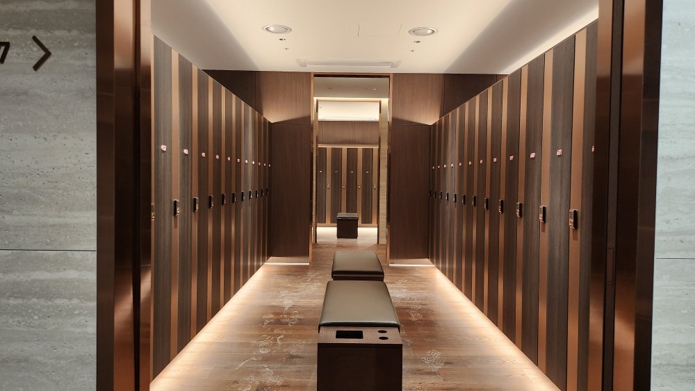 세련된 디자인의 원목 락카와 샤워시설, 완벽한 라운딩 준비를 위한 "락카실"